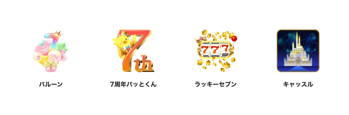 対象期間中、限定ギフトのイベントを開催するとともに、キャッシュバックやpatoコールが【3,939P/h(キャスト1名分)】でご利用いただける還元キャンペーンなど、7周年にちなんで、合計7つの特典をご用意いたしました。