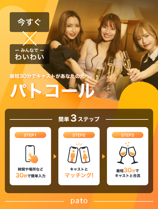 patoには2つのユーザータイプがあり、飲み会やイベントなどに呼ぶ側がゲスト、呼ばれる側がキャストと称されています。